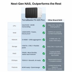 NAS TerraMaster F4-425 Plus 1x256GB NVMe + 2xM.2 Slot 4x HDD 0TB 2x 5GbE 8GBRAM 4xUSB 10 Gb/s Preinstalowany TOS