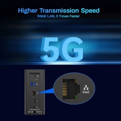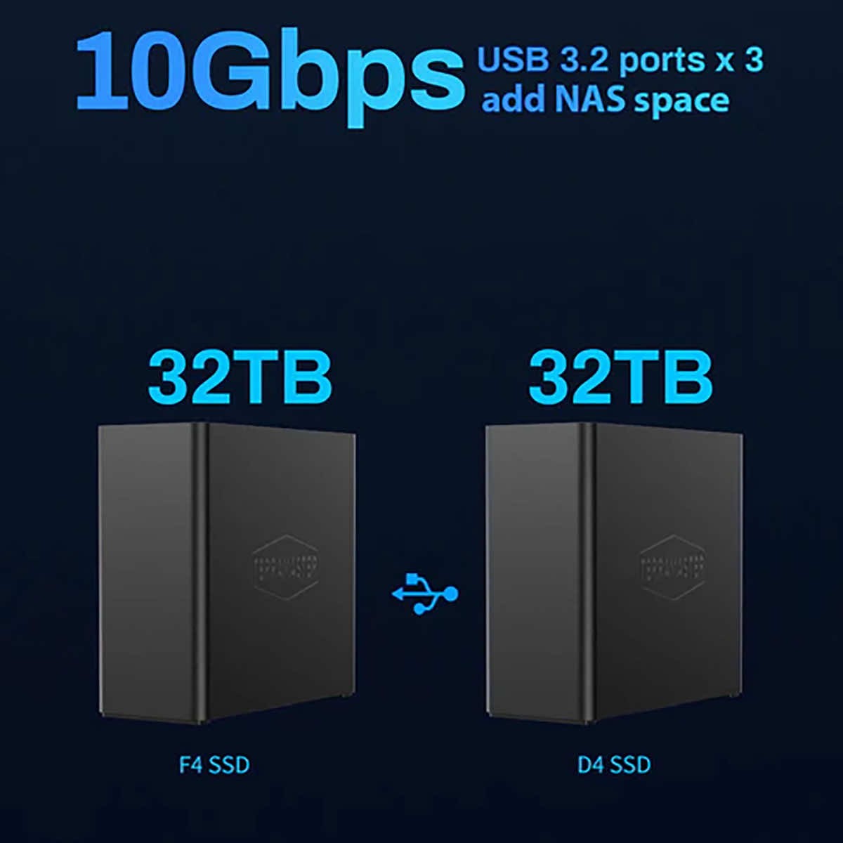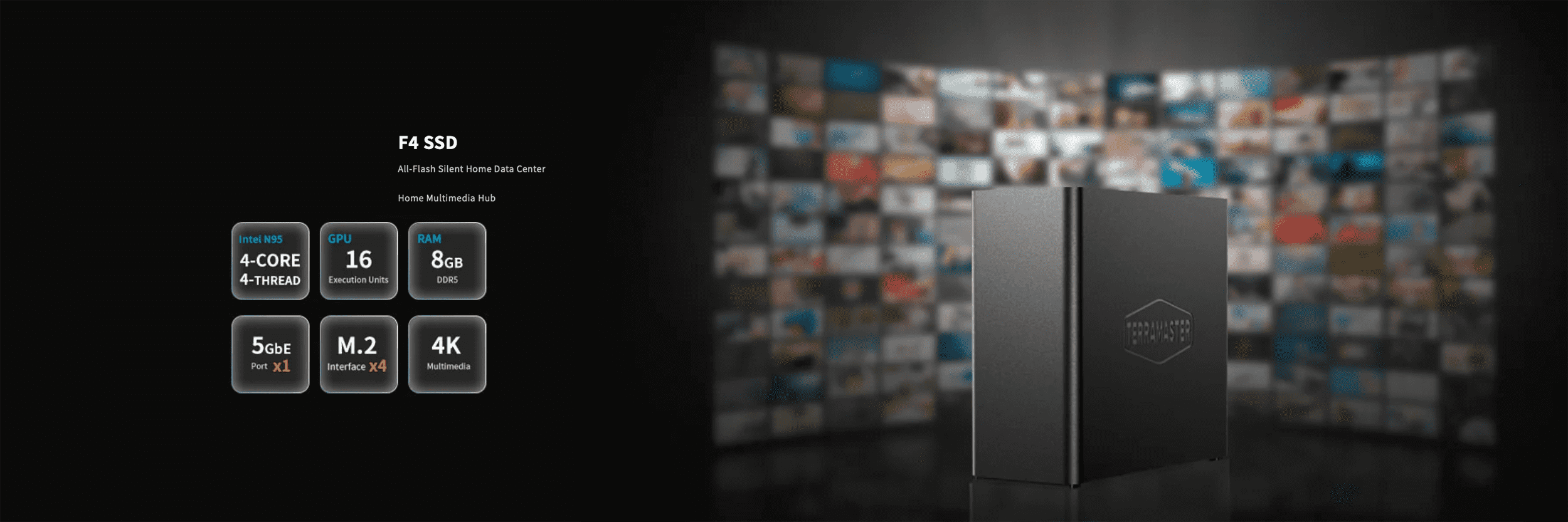 Dysk SSD F4 jest wyposażony w standardowy port 5GbE (5 Gigabit Ethernet), zapewniający prędkość transferu 5 razy większą niż w przypadku tradycyjnych sieci Gigabit. Dzięki bezpośredniemu połączeniu z routerem umożliwia płynny, jednoczesny dostęp wielu urządzeń bez opóźnień, szybki transfer plików oraz zdalny dostęp z sieci zewnętrznych z niewielkimi opóźnieniami.