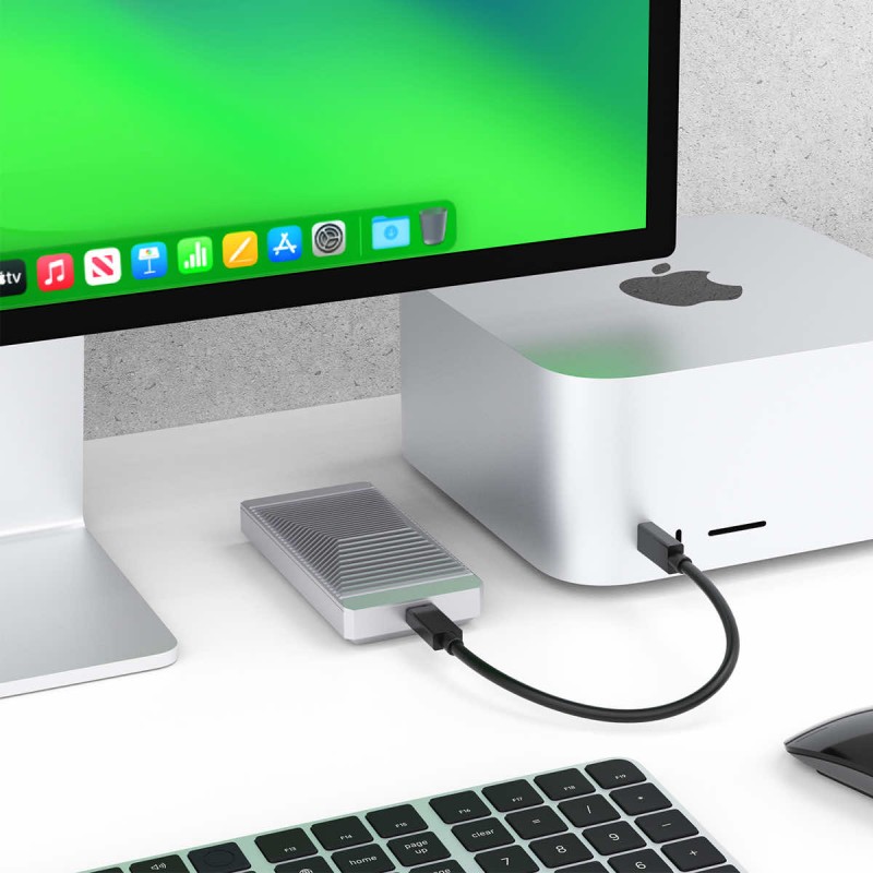 Wysoki transfer do 80Gb/s sprawia, że kieszeń jest idealna we współpracy z komputerami wyposażonymi w port Thunderbolt 5 takimi jak np. Apple Mac z procesorami M4 Pro, M3 Ultra, M4 Max.