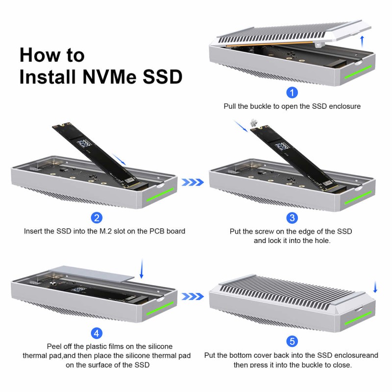 - Kompatybilne dyski: M.2 2280 NVMe M-Key i B&M-Key