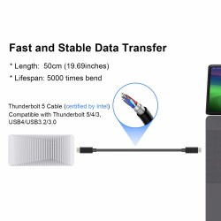 - Dołączony certyfikowany kabel Thunderbolt™ 5 80Gs/s 0.5m zgodny ze standardami USB-C