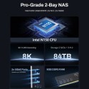 Equipped with Intel's new Twin Lake N150 4-core processor (up to 3.6GHz) with integrated Intel® Graphics, delivering 25% faster 8K video transcoding. Features AES-NI hardware encryption, 16GB DDR5 memory, dual 5GbE ports, and three M.2 slots for exceptional performance and expandability.