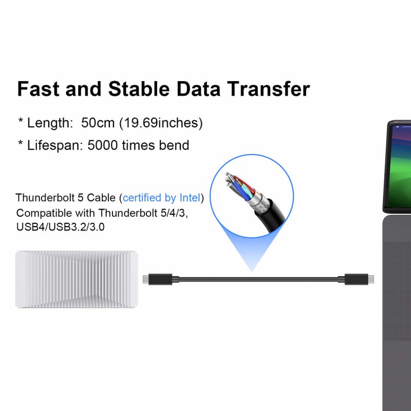 - Included certified Thunderbolt™ 5 80Gs/s 0.5m cable compliant with USB-C standards