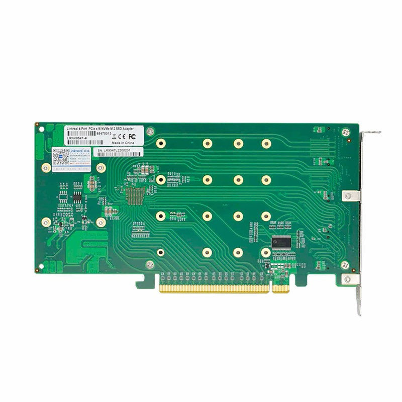 The PEX8747 4x SSD NVMe M.2 to PCIe 3.0 x16 controller without bifurcation LRNV9547-4I provides dedicated PCIe 3.0 x4 bus bandwidth (32 Gb/s) for each M.2 SSD and unlocks the true performance potential of NVMe-based storage configurations. The LRNV9547-4I 4x NVMe M.2 SSD controller is ideal for servers and high-end desktop/workstation platforms. The all-aluminum housing naturally dissipates heat from the SSD modules. In addition, the controller is equipped with an integrated fan and heat sink, which together dissipate excess heat from key components and maintain a reasonable temperature. Importantly, the LRNV9547-4I controller works with hosts without the need for bifurcation. It can be used in external PCIe enclosures for Thunderbolt or USB4.