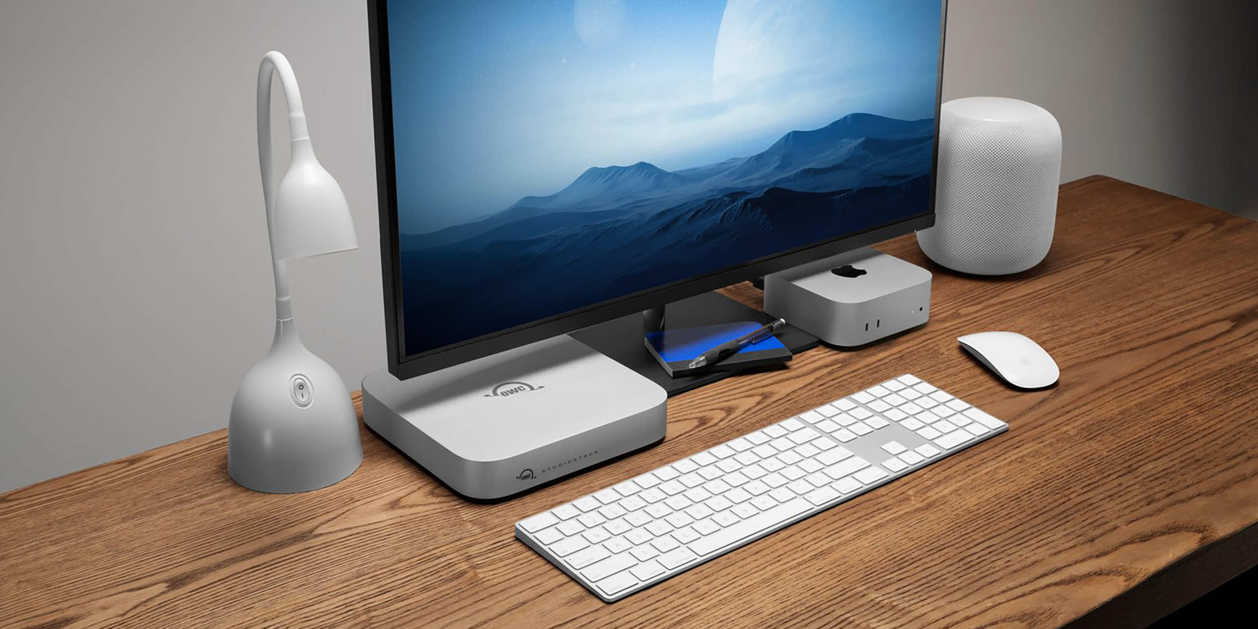 With OWC StudioStack, you can boost your Mac Studio, Mac mini, or other Apple Mac with the world's fastest and highest-capacity innovative hybrid storage. Now you can show your true power... with up to 64 times more storage capacity, real-world speeds of up to 6302 MB/s that match the latest Mac Studio models, and a six-port Thunderbolt/USB-A hub for additional connectivity. Show off all that increased power of the OWC StudioStack in a sleek, aircraft-grade aluminum enclosure that fits perfectly on top of or under your powerful Apple Mac computer.