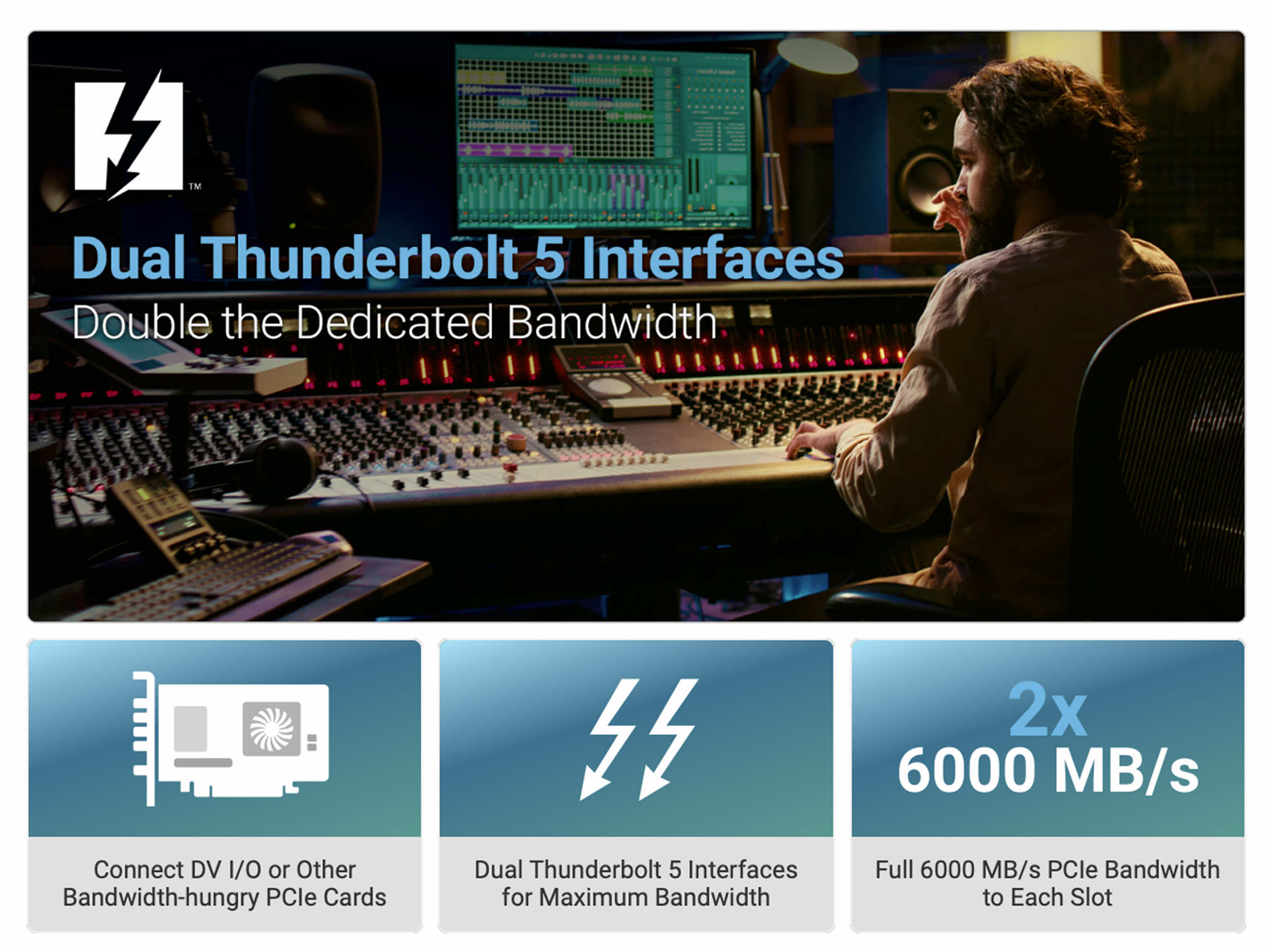 Two Times the Bandwidth! Separate Thunderbolt 5 Interface for Each Card Slot