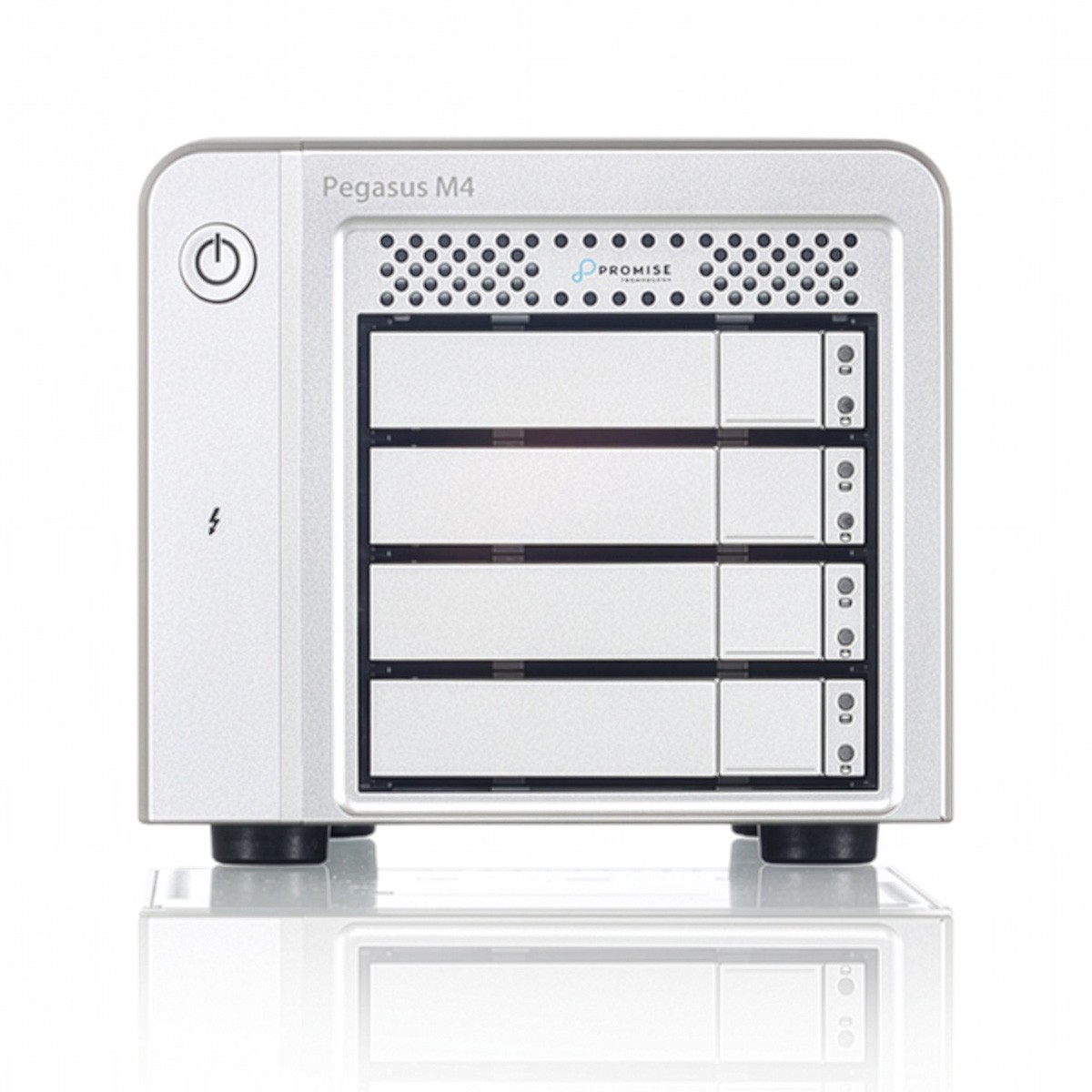 The Promise Pegasus M4 combines the robust PROMISE RAID engine—known for its stability and high performance—with the high bandwidth of Thunderbolt™. All this is enclosed in a compact SSD enclosure with four bays. The Promise Pegasus M4 is ideal for creative media professionals who travel frequently.