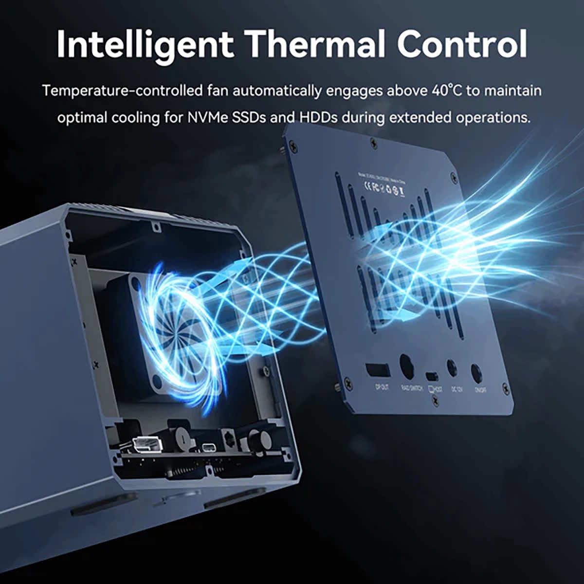 - Inteligentny wentylator z regulacją temperatury – automatyczne chłodzenie zapewniające stabilną wydajność.