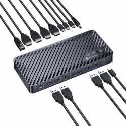 iDock M10 KVM Switch Docking Station for MacBook and PC 2x 4K HDMI 1x Laptop + 1x Desktop, 100W Charging, 10-in-1 USB-C Dock