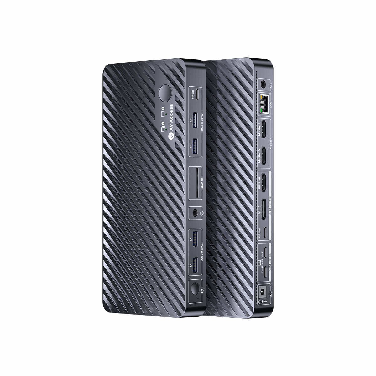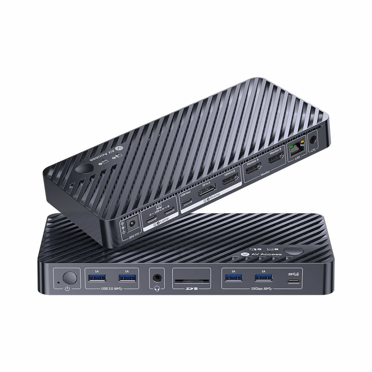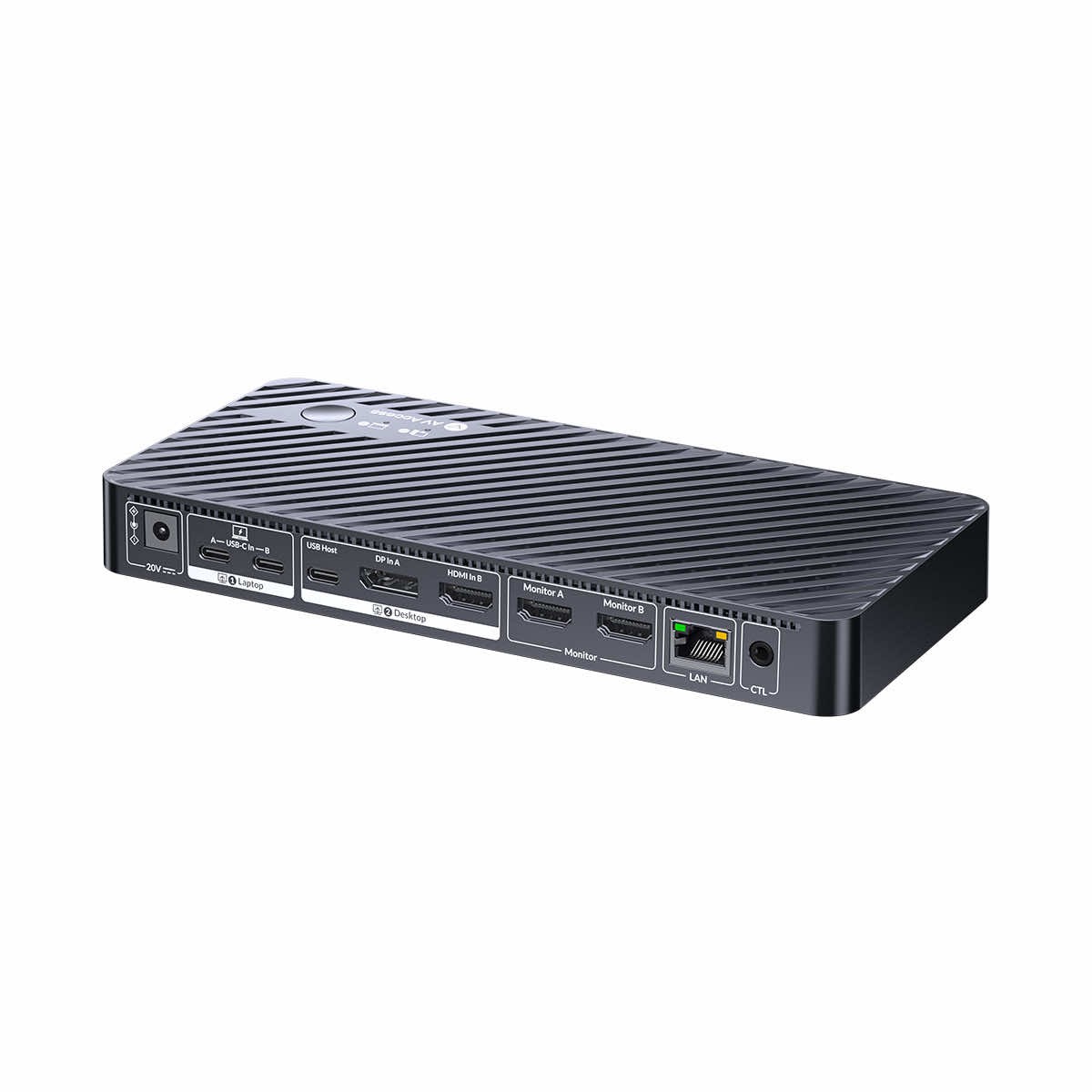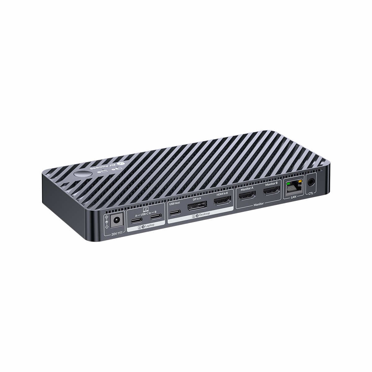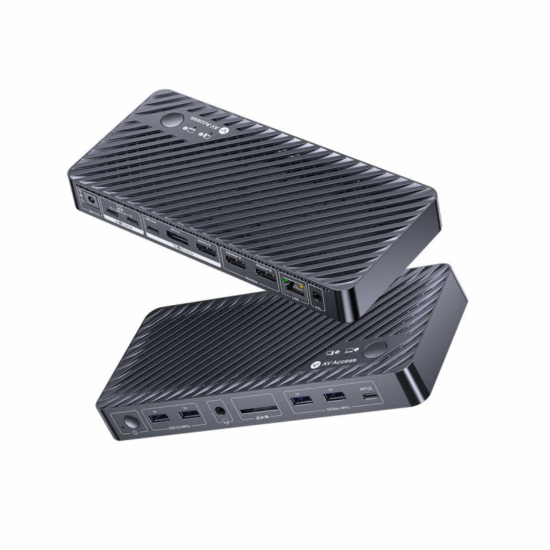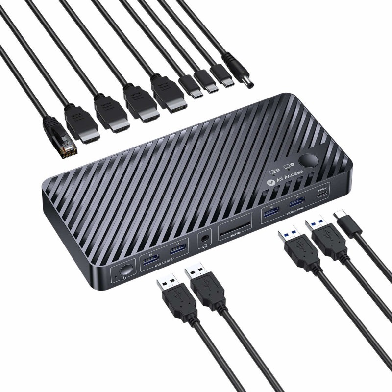 AV Access iDock M10 KVM Switch Docking Station for MacBook and PC to stacja dokująca KVM dedykowana dla komputerów Mac i PC. AV Access iDock M10 KVM Switch Docking Station umożliwia swobodne przełączanie pomiędzy urządzeniami, łatwe rozszerzanie portów i funkcjonalności podłączonych hostów oraz ładowanie podłączonego komputera z mocą do 100W. Podłącz komputer Mac do dwóch monitorów i wszystkich urządzeń peryferyjnych, a jednym dotknięciem przełącz wszystko na komputer stacjonarny.