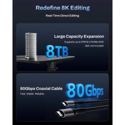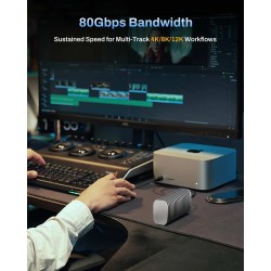 Zestaw dysk Samsung 9100 Pro 8TB SSD NVMe M.2 wraz z kieszenią TerraMaster D1 SSD Pro Thunderbolt 5 80GB/s został stworzony z myślą o profesjonalnych użytkownikach wymagających niesamowitej prędkości i pewności danych. Z łatwością obsługuje transfery plików RAW 8K. Dzięki stałej wysokiej wydajności może służyć jako zewnętrzny dysk do bezpośredniej edycji, umożliwiając płynną edycję w czasie rzeczywistym i podgląd wielościeżkowych projektów 4K/8K w programach Final Cut Pro i Premiere — bez proxy. Wykorzystując technologię Thunderbolt™ 5, Zestaw dysk Samsung 9100 8TB Pro SSD NVMe M.2 wraz z kieszenią TerraMaster D1 SSD Pro Thunderbolt 5 zapewnia przepustowość do 80 Gb/s oraz sekwencyjną prędkość odczytu/zapisu wynoszącą średnio 6 000MB/s.
